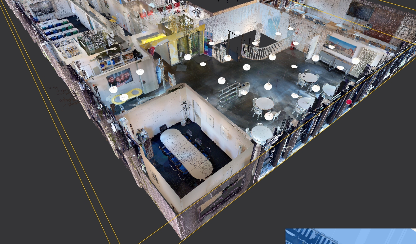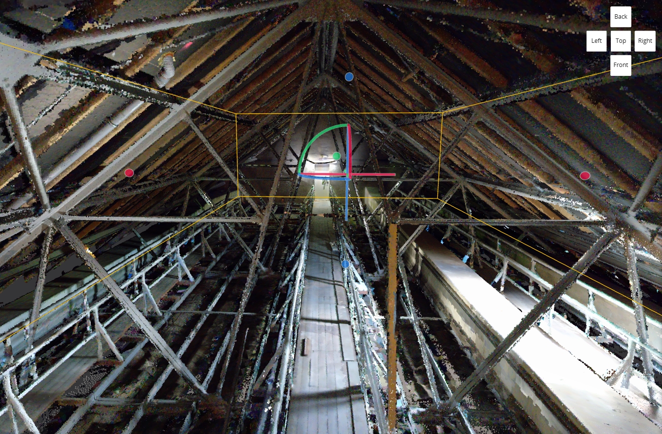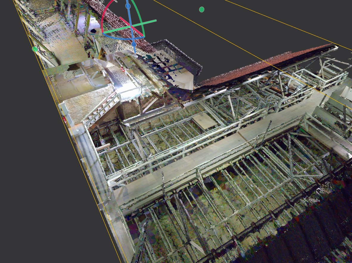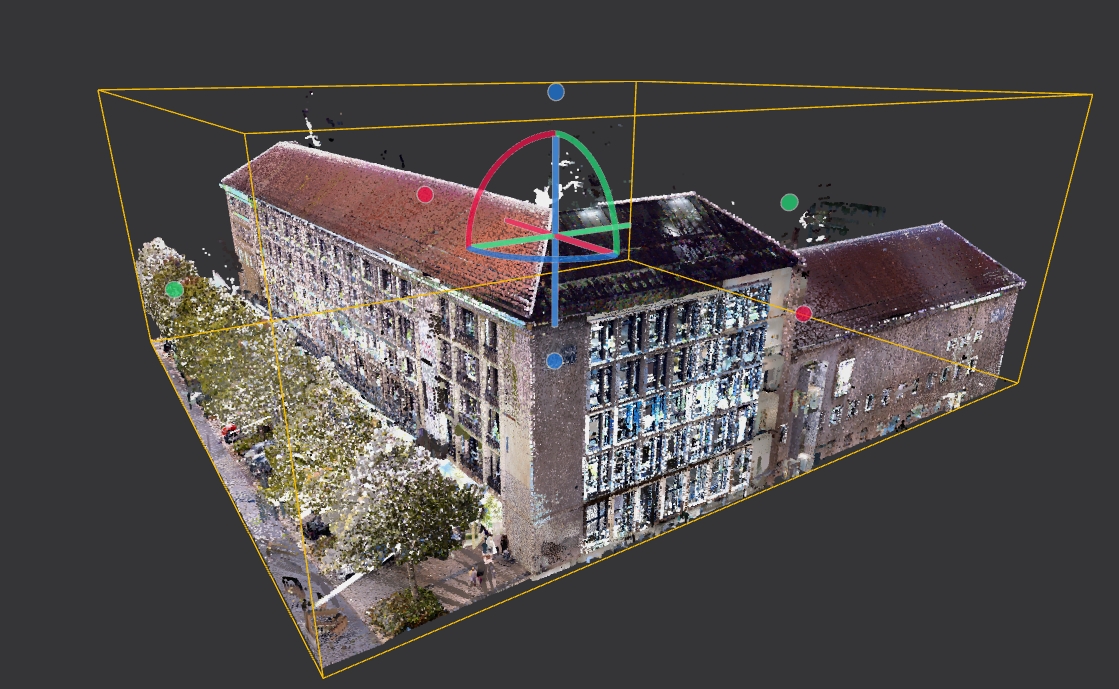 Ein stationärer Scanner im Außenbereich diente dervollständigen Erfassung der Fassade. Die Traufkante lag bei ca. 20 Metern höhe